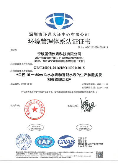 ISO14001環境(jìng)管理體(ti)系認證(zhèng)證書