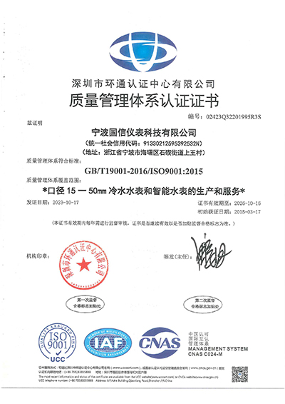 ISO9001質(zhi)量管理(li)體系認(rèn)證證書(shū)
