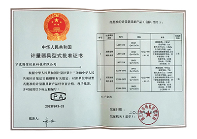 計量(liang)器具型(xíng)式批準(zhǔn)證書