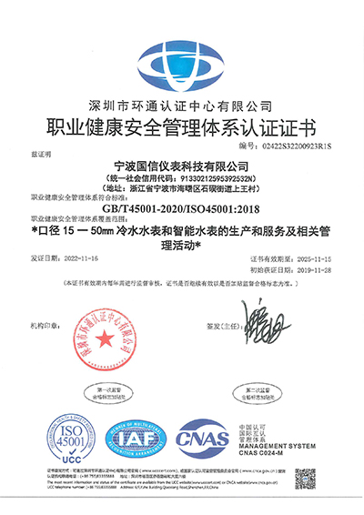 ISO45001職業健(jian)康安全(quán)管理體(ti)系認證(zheng)證書
