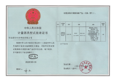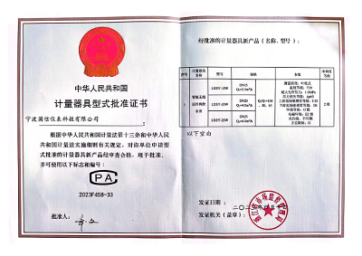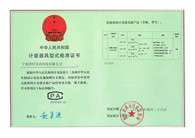 計量(liang)器具型(xíng)式批準(zhǔn)證書